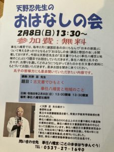 令和8年2月8日(日)13時30分~「おはなしの会」のお知らせ 今年も「おはなしの会」を開催いたします。 「建国」について考える機会になればと思います。 今回は、天野先生のお話です。 詳しくは画像をご覧ください。 多くの方のご参加をお待ちしております。